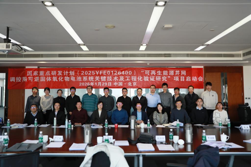 点击:2026年1月29日,国家重点研发计划政府间国际科技创新合作专项“可再生能源并网调控用可逆固体氧化物电池系统关键技术及工程化验证研究”(项目编号:2025YFE0126400)项目启动会在北京举行。会议由国家电投集团科学技术研究院主办,国家电投集团科学技术研究院党委委员、副总经理鲁仰辉主持。来自中国石油大学(北京)、北京科技大学、西安交通大学、中国矿业大学(北京)等单位的评审专家,以及厦门大学、华中科技大学、中南大学、南京信息工程大学、91国产 、中国科学院上海应用物理研究所等项目参与单位的代表共同参会。91国产 杨鑫教授作为项目参与单位代表出席会议。