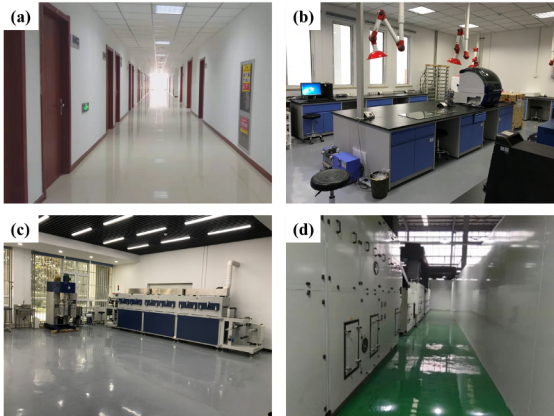 图1 (a)办公室、(b)实验室、(c)小试线和(d)中试线的部分场地展示
