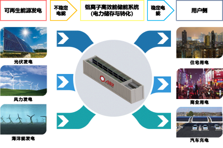 图 3 铝离子电池系统用于稳定可再生能源发电的应用场景