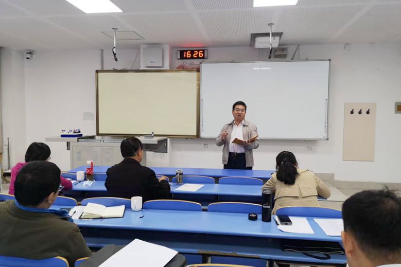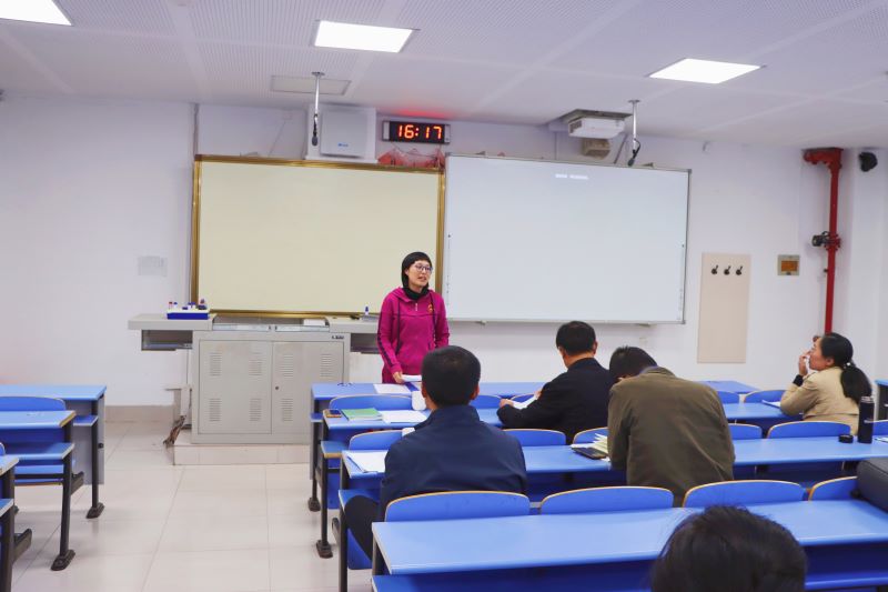杨前明教授对5位教师的教学比赛进行了点评指导,希望老师们充分利用多媒体设备,并进一步加强板书与多媒体课件的配合,完善讲课细节。特邀评委张文睿副教授分享了自己参加比赛的心得,并建议老师们深入挖掘工科背景,理论配合案例吸引听众注意力。