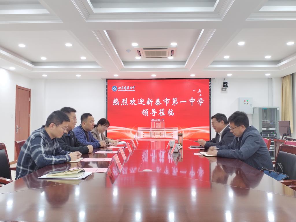 座谈伊始,秦晓钟书记对两位领导的到来表示热烈欢迎,对新泰市第一中学为我校一直以来输送的优质生源表示感谢。并向来访客人介绍了我校“惟真、求新”的文化特点和精神内涵,对我校结构框架、历史变迁、特色文化及获得荣誉等办学情况进行交流。
